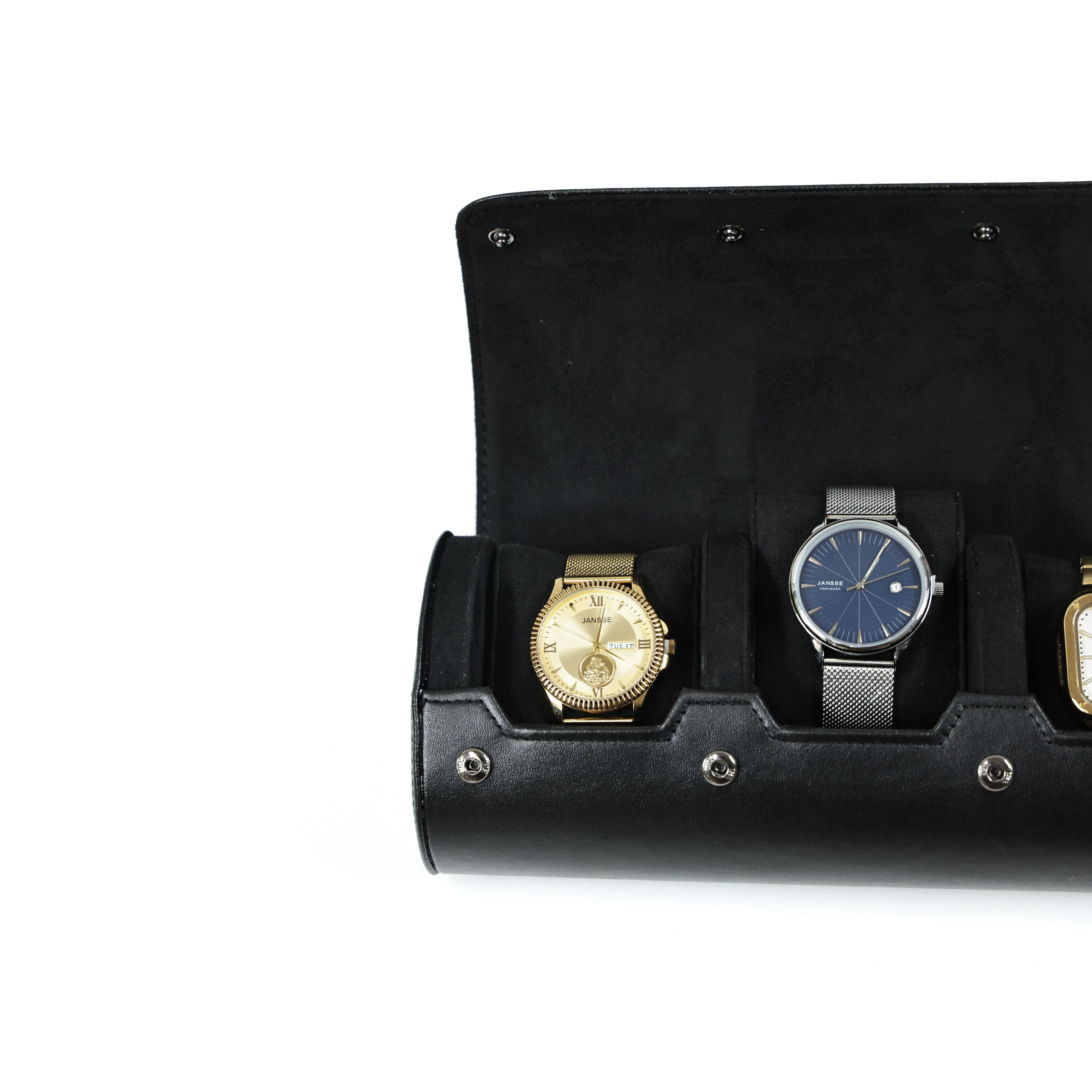 Black Triple Watch Leather Roll