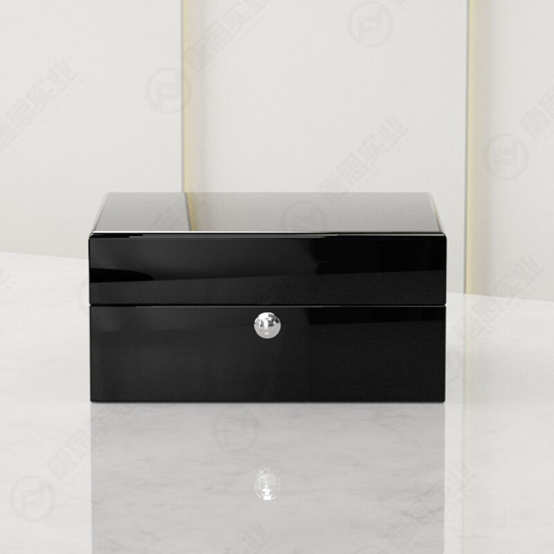 Sophisticated watch case for men in matte black finish with secure locking system. This watch storage solution offers protection and organization for valuable collections. Our OEM options include custom foam inserts and color variations. Ideal for watch enthusiasts and security-conscious users.