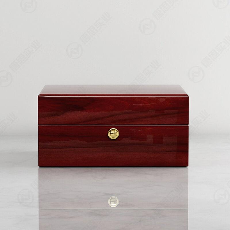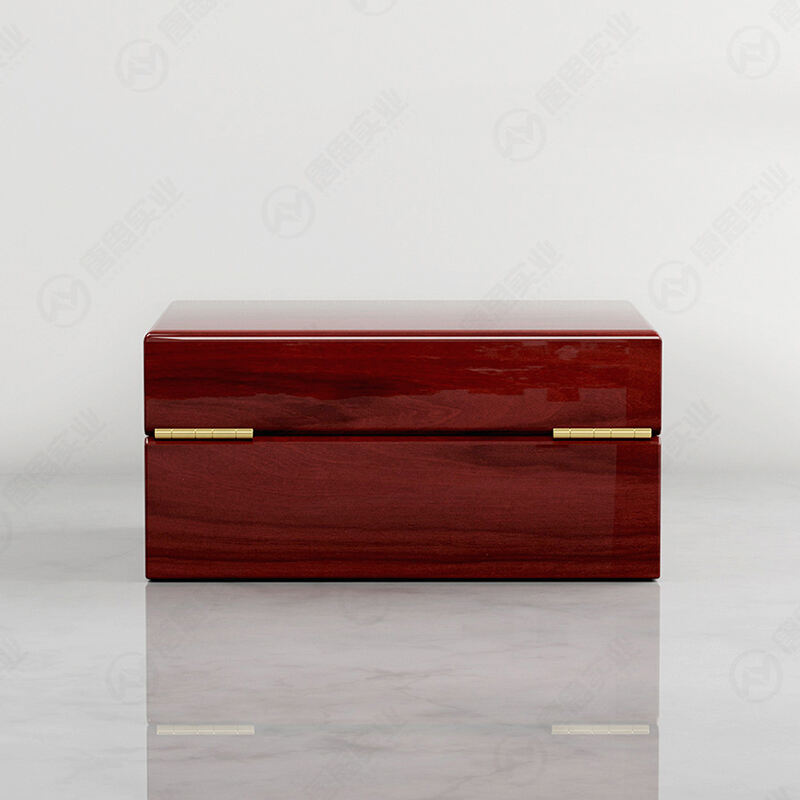 This is a watch box made of MDF. It usually has a sturdy outer shell to protect the internal watch, lined with soft materials (such as velvet/leather) to prevent scratches, and designed with independent watch pillows or compartments to secure the watch. The wooden watch box has a natural and warm appearance, unique texture, and combines practical storage function with elegant decorative effect.