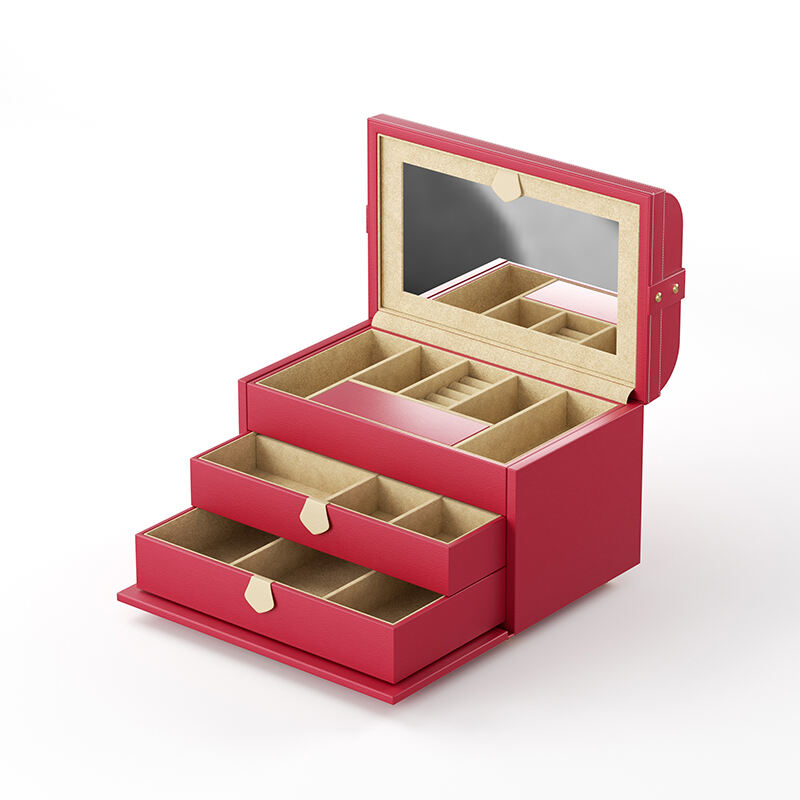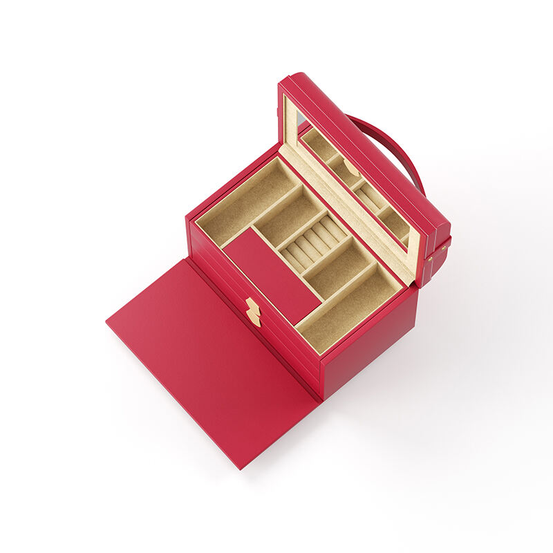 Designed for the mobile lifestyle, this efficient jewelry organizer travel case features secure compartments in vibrant red leather. The practical jewelry organizer travel solution prevents jewelry damage during transit while maintaining organization on the go. We offer OEM customization for this jewelry organizer travel case including size variations, closure mechanisms, and interior padding options. The compact design of this jewelry organizer travel accessory makes it perfect for business trips, vacations, or daily use, ensuring your jewelry stays perfectly organized wherever you travel.