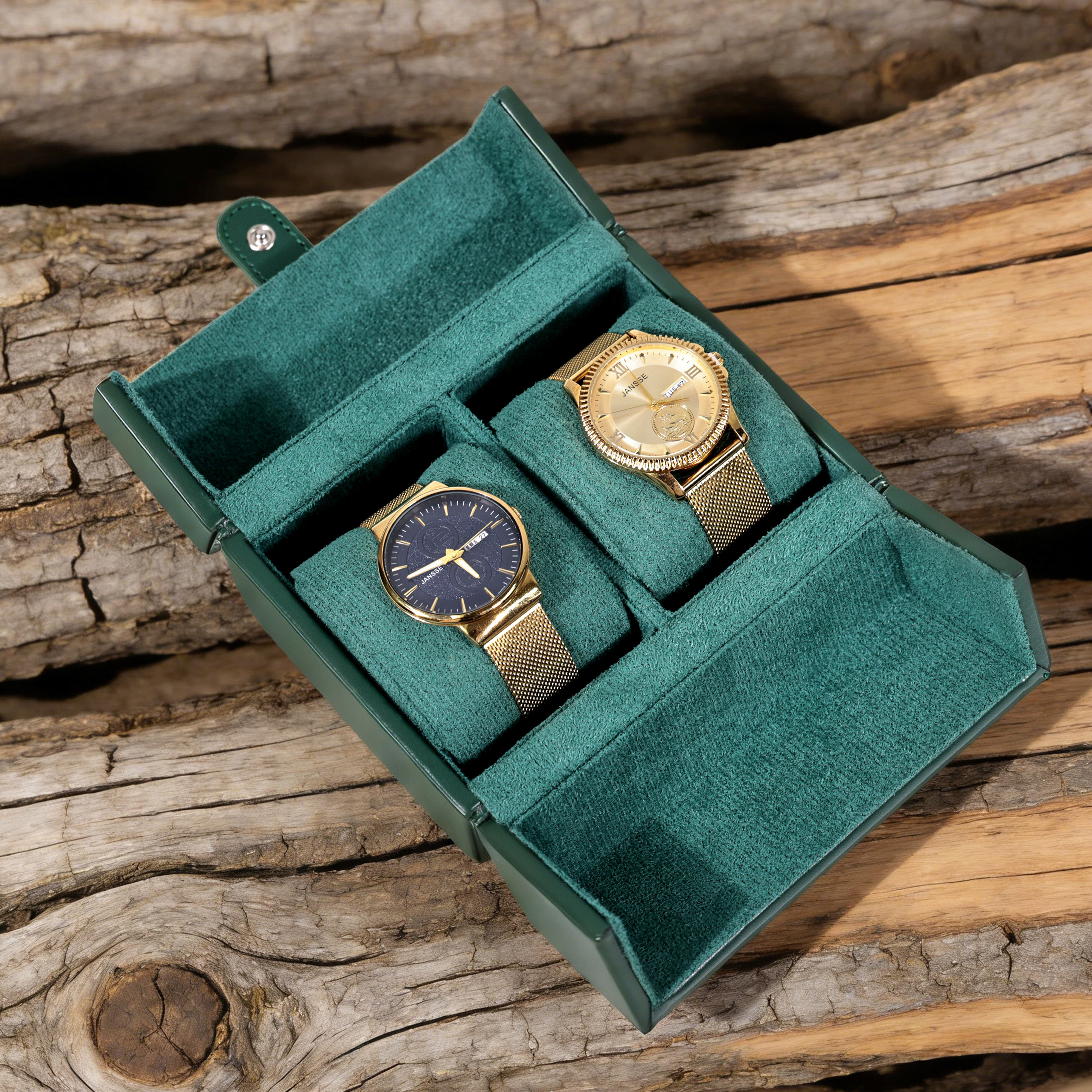 Maksimer plads og adgang med vores innovative Grøn urkasse med to døre til to ure den kompakte urindlag udstyrer en markant dobbeltdørs design i en opsigtsvækkende grøn finish, hvilket giver dig mulighed for at se og få adgang til hvert ur uafhængigt uden at forstyrre det andet. Dens pladseffektive design gør den perfekt til natborde, skriveborde eller rejser. Indersiden er gennemtænkt inddelt med individuelle polstrede puder til hvert ur. Vi leverer detaljerede OEM-tilpasning til denne model, som kan omfatte ændring af dørmekanismens type (magnetisk eller hængsel), justering af indre layout for at rumme større ure og påtrykning af dit brands logo på ydersiden. Denne grøn to-ur-æske med dobbeltdøre er perfekt egnet til moderne samlers med begrænset plads, som et tankefuldt gavevalg til par eller for detailhandlere, der søger en funktional og visuelt interessant udstillingsmulighed for deres produkter.