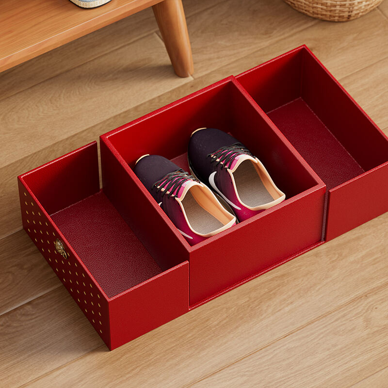 Care for your fine leather shoes with our specialized dual-opening shoe box. This leather shoe storage box features two opening mechanisms for easy access, often incorporating compartments for polish and brushes. It's the ultimate shoe care kit for preserving your footwear. Our OEM services can create a custom shoe care box for shoe brands or retailers, with tailored interiors and premium branding, enhancing the product's value as a complete care solution.