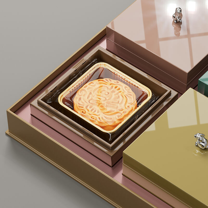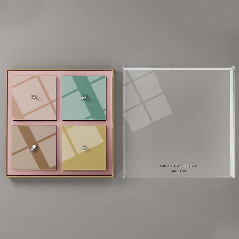 Questa elegante scatola per mooncake presenta quattro scomparti separati con finestra trasparente, perfetta per conservare mooncake assortiti. La nostra soluzione di imballaggio per mooncake include un design impilabile sicuro e materiali atossici. Offriamo personalizzazione OEM con stampa del logo e colori personalizzati. Ideale per regali del Festival di Mezz'autunno e per rivenditori di panetterie.