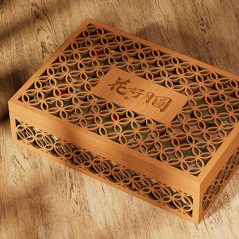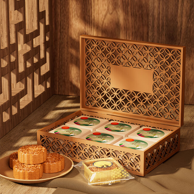 Combine the warmth of wood with delicate artistry in our laser-cut floral mooncake wooden box. This decorative wooden box has an intricate floral or lunar pattern laser-cut directly into the wooden lid, allowing light to filter through and creating a beautiful shadow play. It’s a functional work of art. We offer OEM laser-cut wood boxes where you can provide any vector design for cutting. Choose the wood thickness and species for different effects. This custom Laser-Cut wood box is a premium, Instagram-worthy packaging option that customers will treasure and reuse.