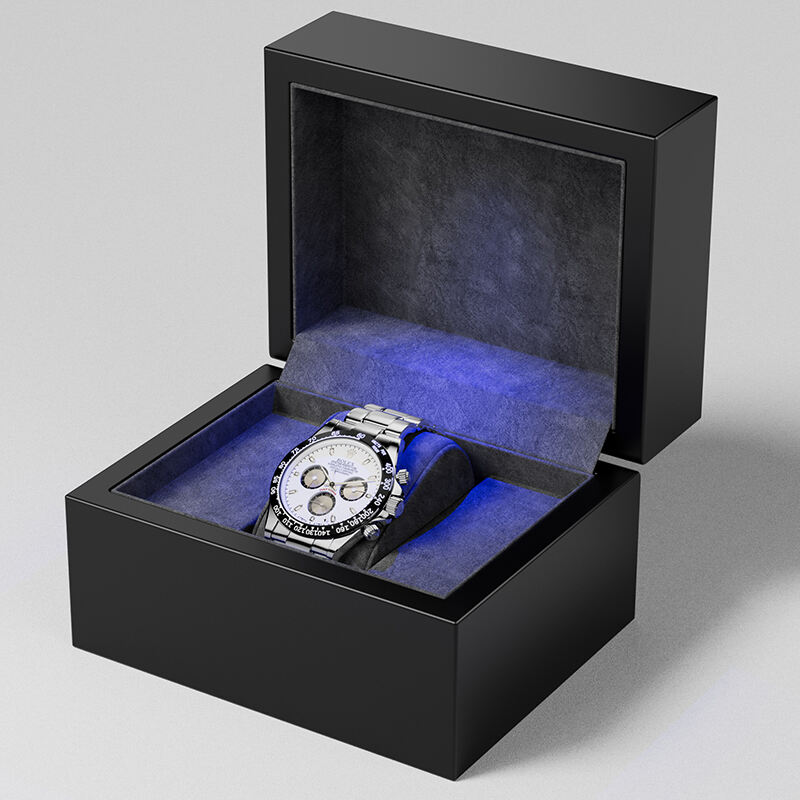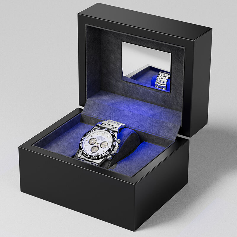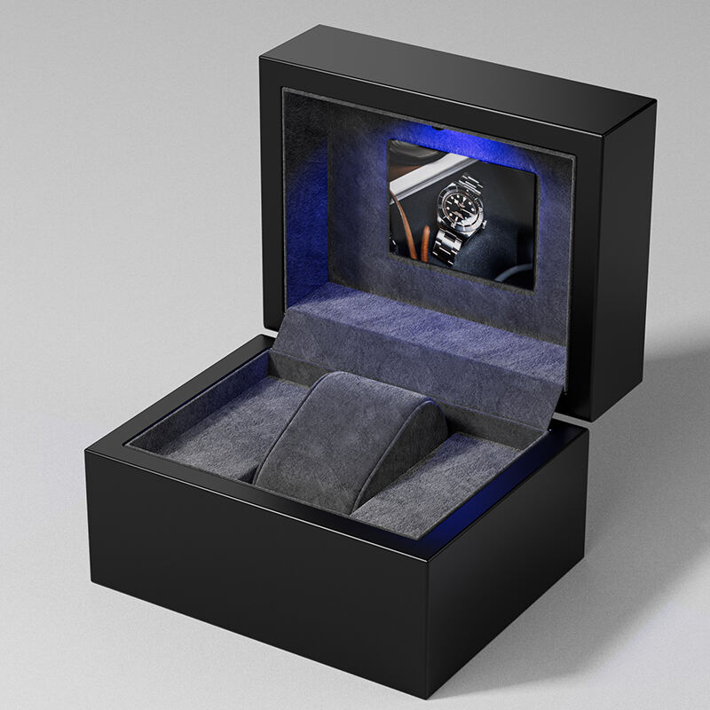 Showcase your watch in its best light with our LED Illuminated Watch Box. This innovative watch box custom solution integrates energy-efficient LED lighting to dramatically highlight your timepiece, day or night. It serves as a stunning watch display case for retail counters or home collections. The lighting enhances the details and craftsmanship of the watch inside. Our OEM program allows you to customize this customized watch box by choosing the color temperature of the LEDs, the power source, and the placement of your logo, creating a dynamic and engaging display piece.Specifications and Parameters