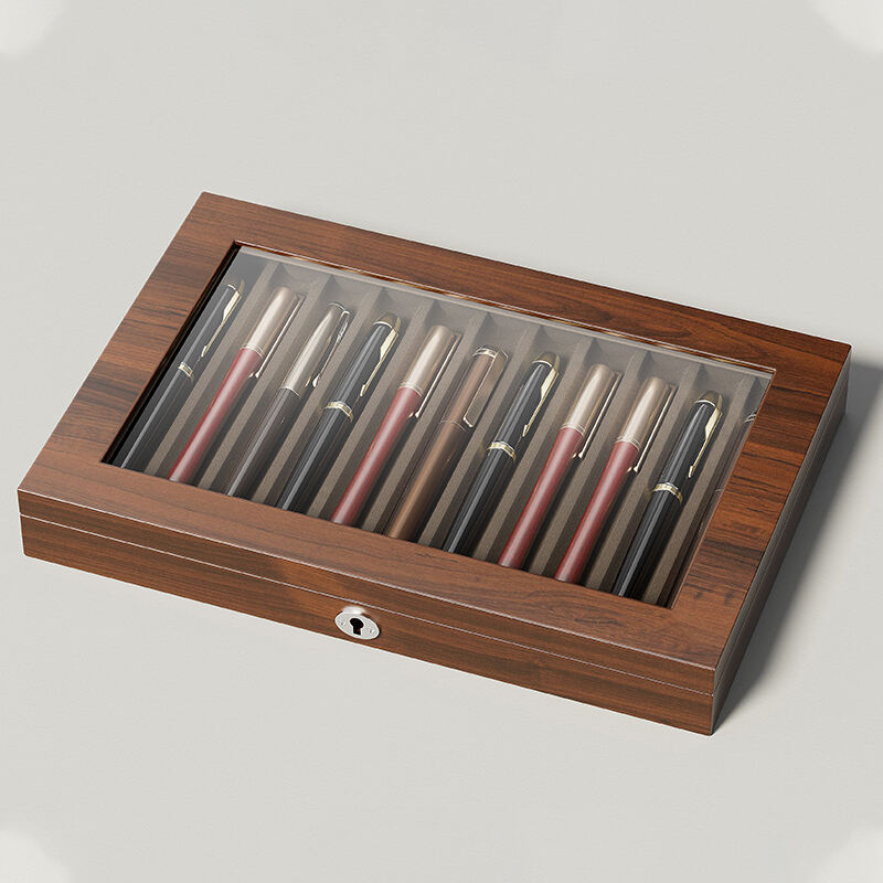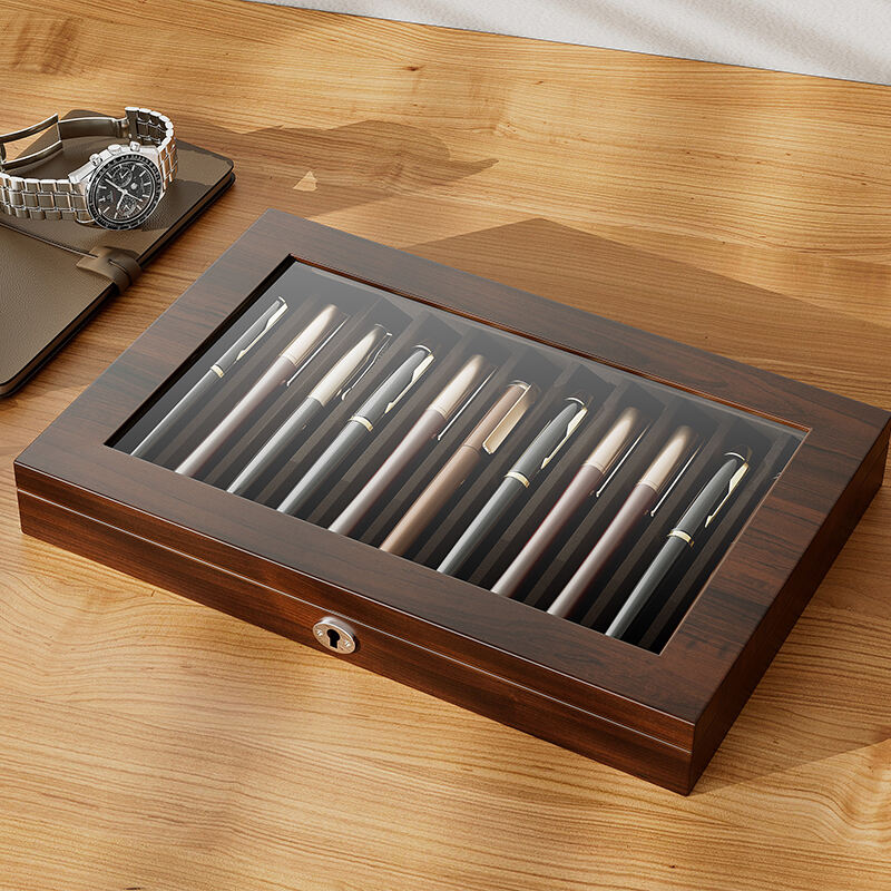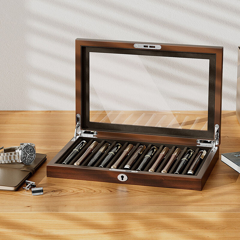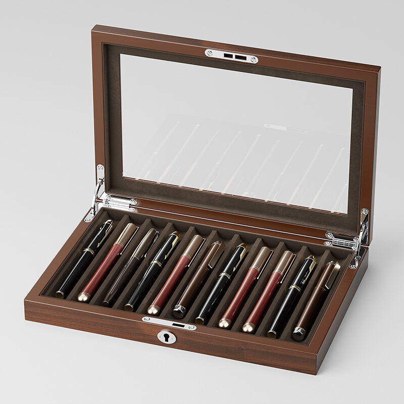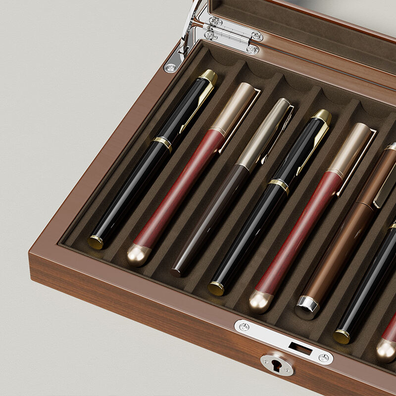 Designed for the discerning collector, this luxury fountain pen box offers a dedicated home for your most prized writing instruments. As a high-end pen display case, it features individual slots to securely hold and showcase each pen, preventing contact and damage. The premium materials and craftsmanship make it a collector's item itself. This custom pen display box is available for OEM partnerships, with options for custom-sized slots, choice of interior lining, and exterior branding, catering to the needs of high-end pen manufacturers and retailers.