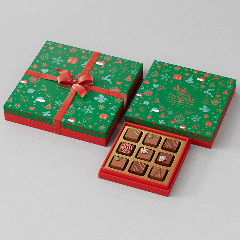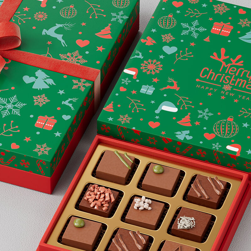 Sophisticated christmas gift box for men designed specifically for premium chocolate collections. This chocolate gift packaging features masculine aesthetics and secure compartments. We provide OEM customization including logo engraving and custom layouts. Ideal for chocolatiers and Christmas corporate gifts.