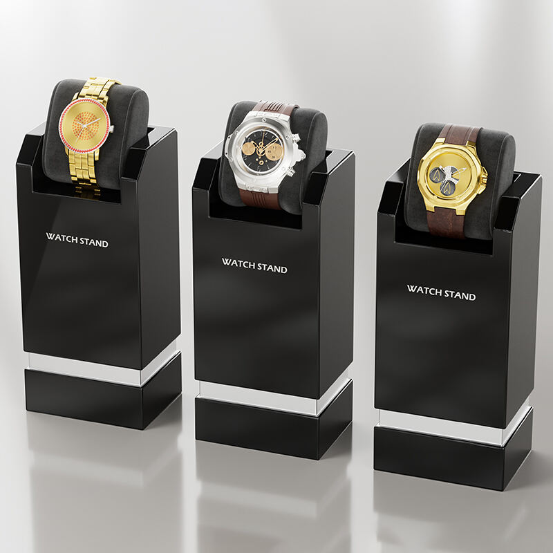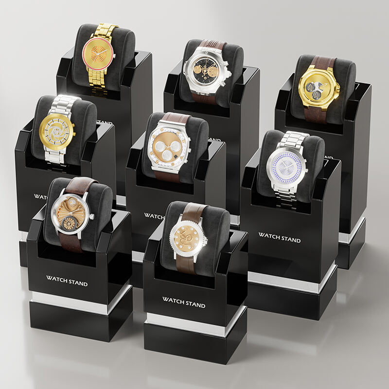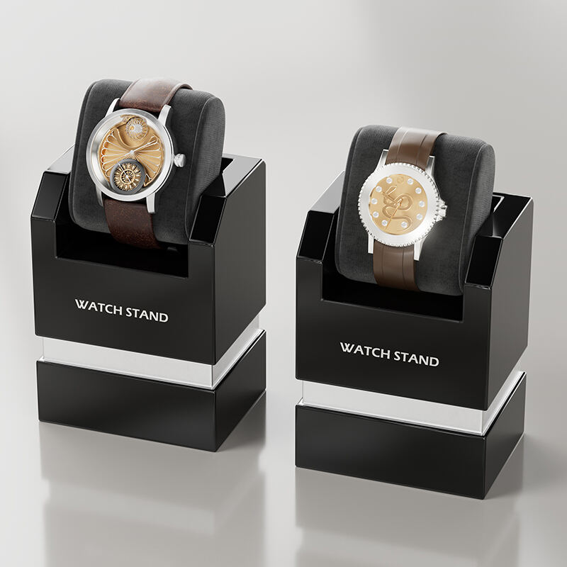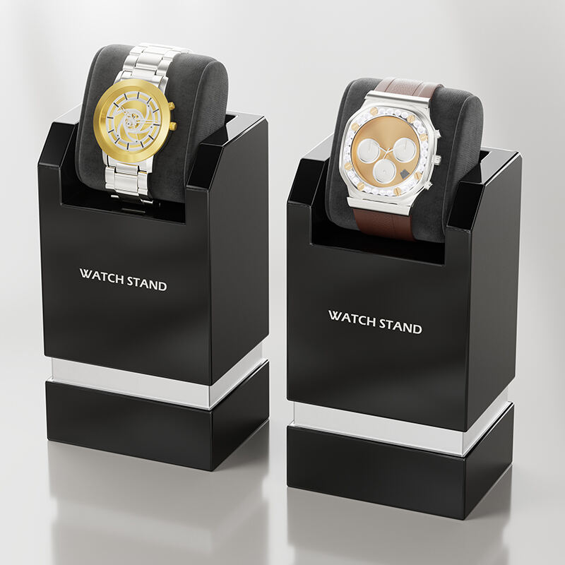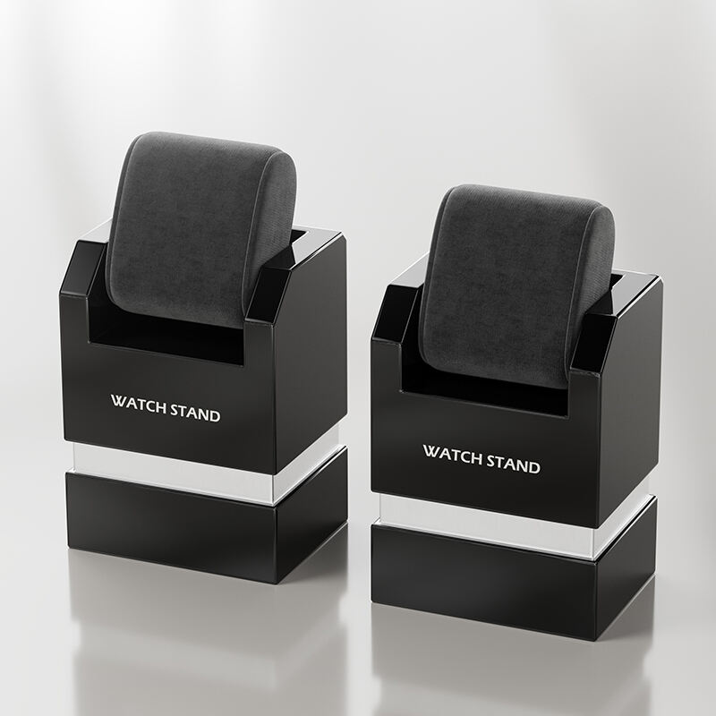 Highlight the unique design of a single watch with our Modern Watch Display Stand. This minimalist display watch stand is crafted from high-quality materials for stability and elegance. It’s the perfect watch holder for retail displays, trade shows, or as a stylish accessory on a home desk, allowing the watch to be appreciated from all angles. Its simple design puts the focus entirely on the timepiece. This stand is excellent for OEM branding as a custom watch display accessory. We can customize the base with laser etching or offer it in various metallic and acrylic finishes to complement your product line.