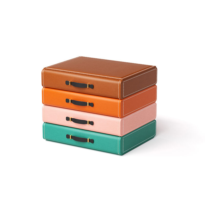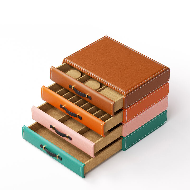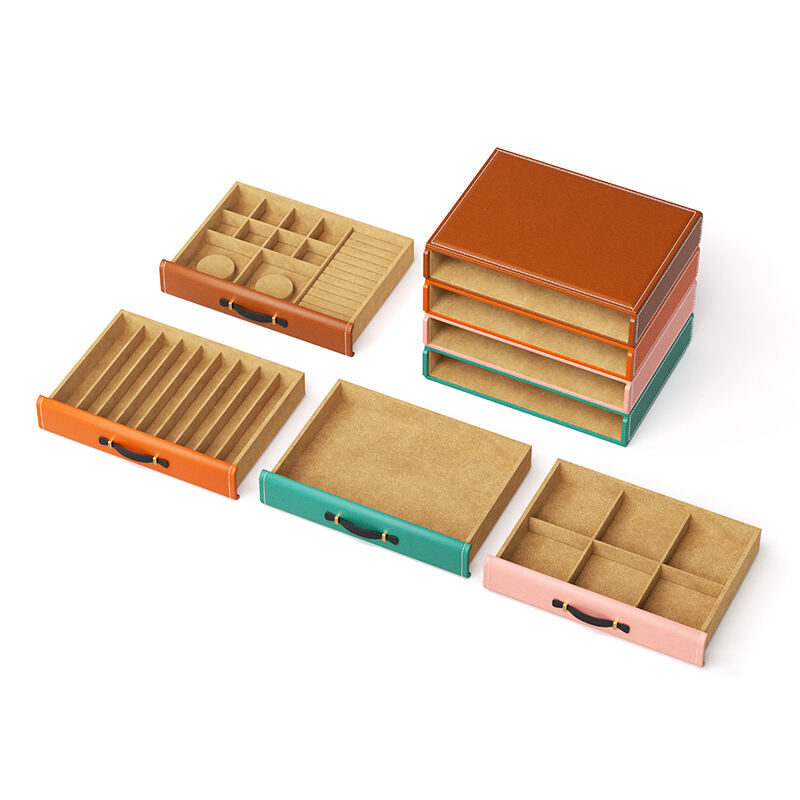 This premium jewelry organizer features multiple layers of genuine leather compartments, providing elegant storage for your entire collection. The sophisticated jewelry organizer maintains separation between different jewelry types while offering easy visibility and access. Our OEM services allow complete customization of this jewelry organizer, including leather type selection, layer configuration, and compartment sizing. The durable construction ensures long-term protection for your valuable pieces while the elegant design enhances any dressing table. This versatile jewelry organizer meets both personal storage needs and professional retail requirements.