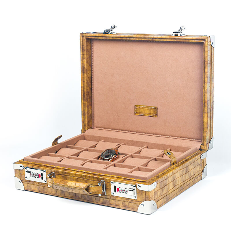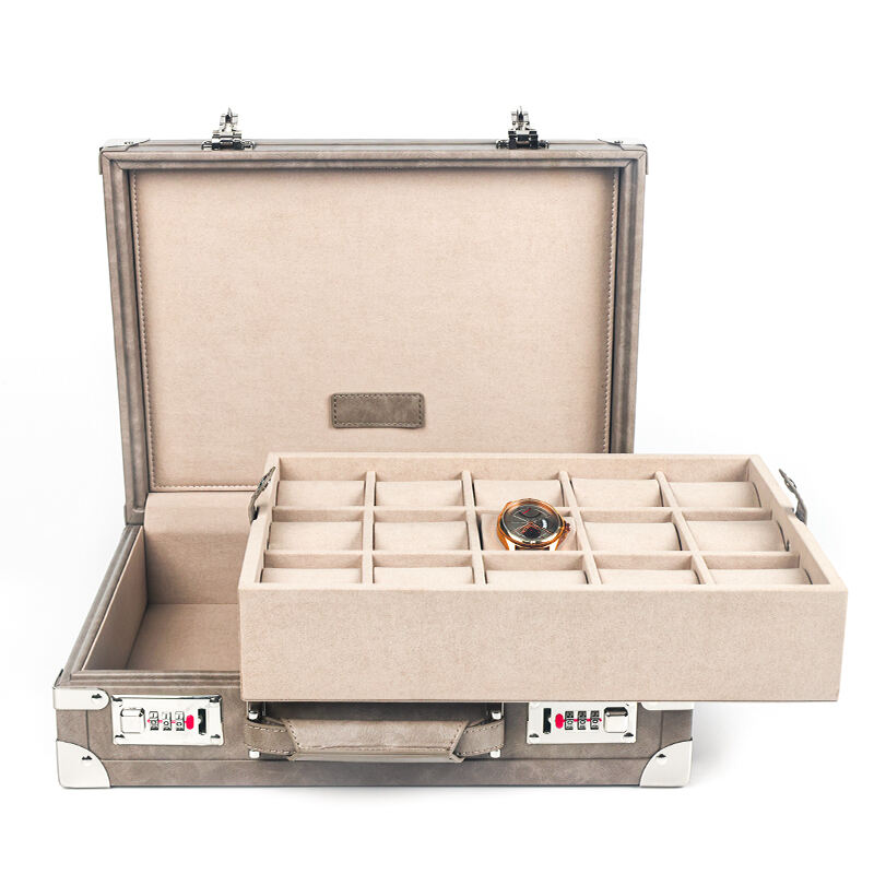 This versatile watch holder functions as a multi-unit storage and carry case, designed for watch retailers and collectors. The watch holder compartmentalizes up to 6 timepieces with cushion protection, while the portable design includes a sturdy handle for easy transport. We offer OEM services such as custom interior layouts and logo engraving. This watch storage case is ideal for luxury brand displays and personal collections.
