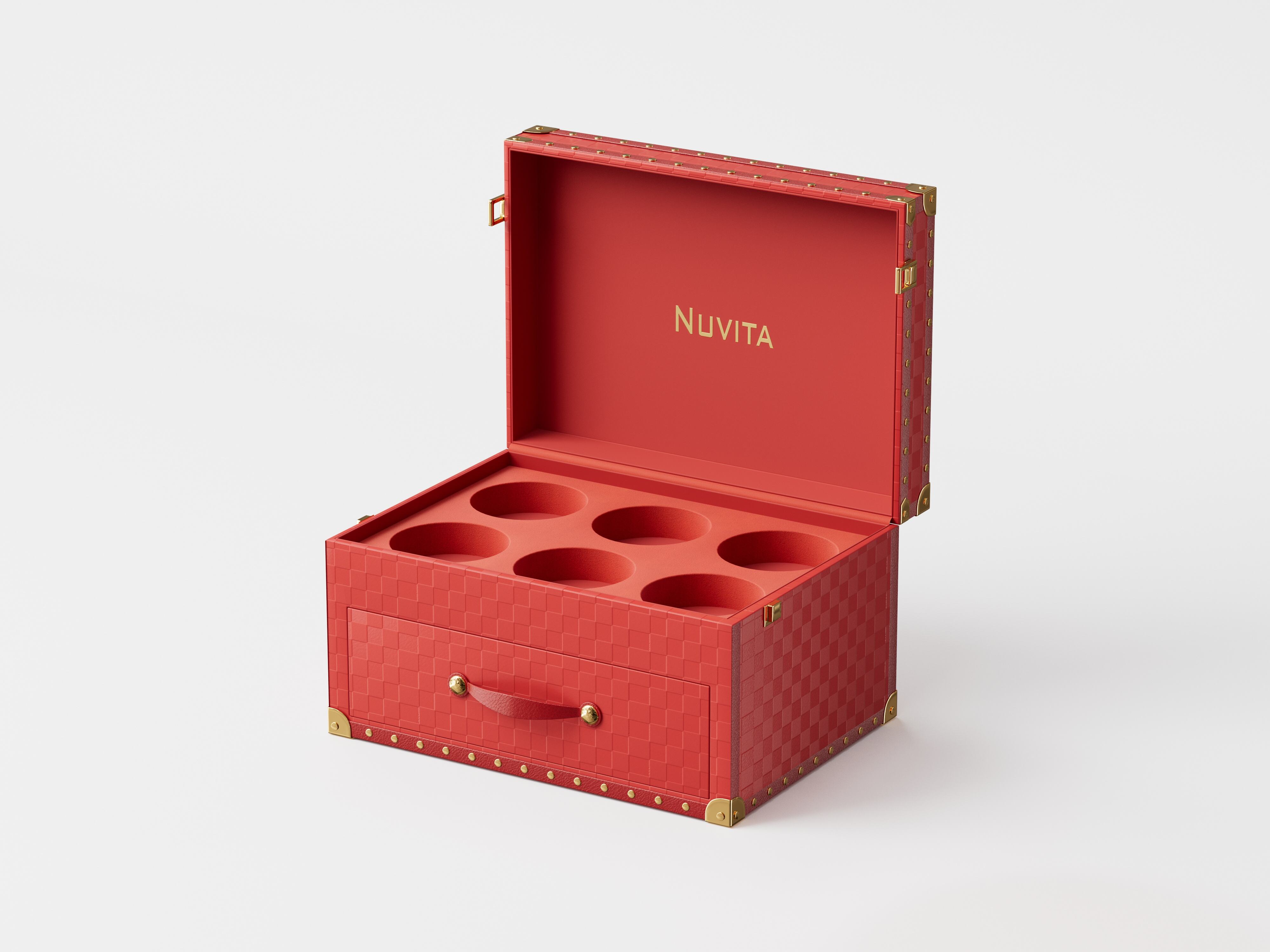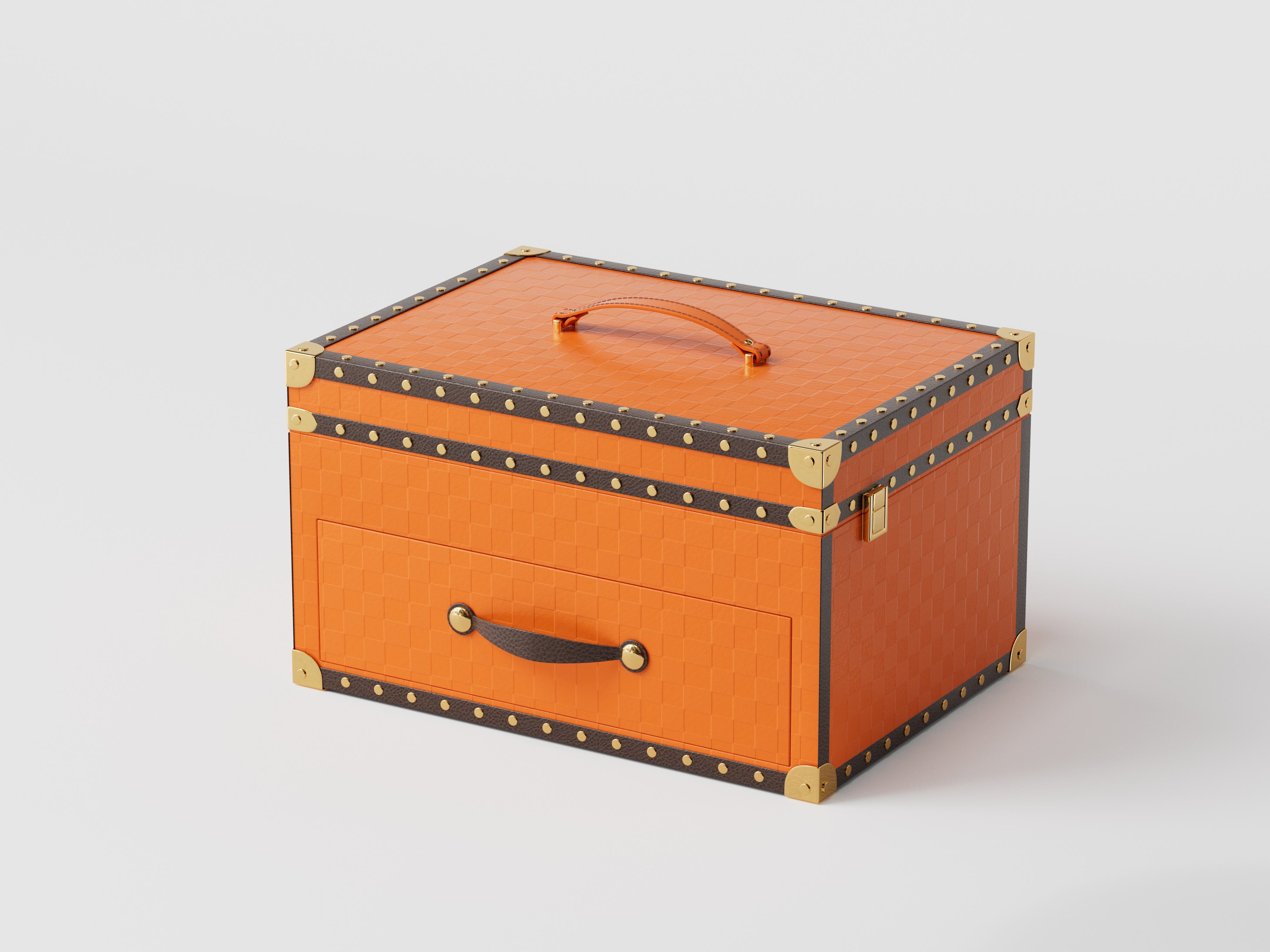 Make a bold statement with this Layered Leather Case in vibrant red. Designed with stackable layers secured by sturdy straps or clasps, it allows for organized separation of different items. The rich color adds a touch of elegance to any vanity or retail display. Our custom storage case solutions enable full personalization—choose leather texture, layer quantity, and interior fabric for a unique private label layered case.