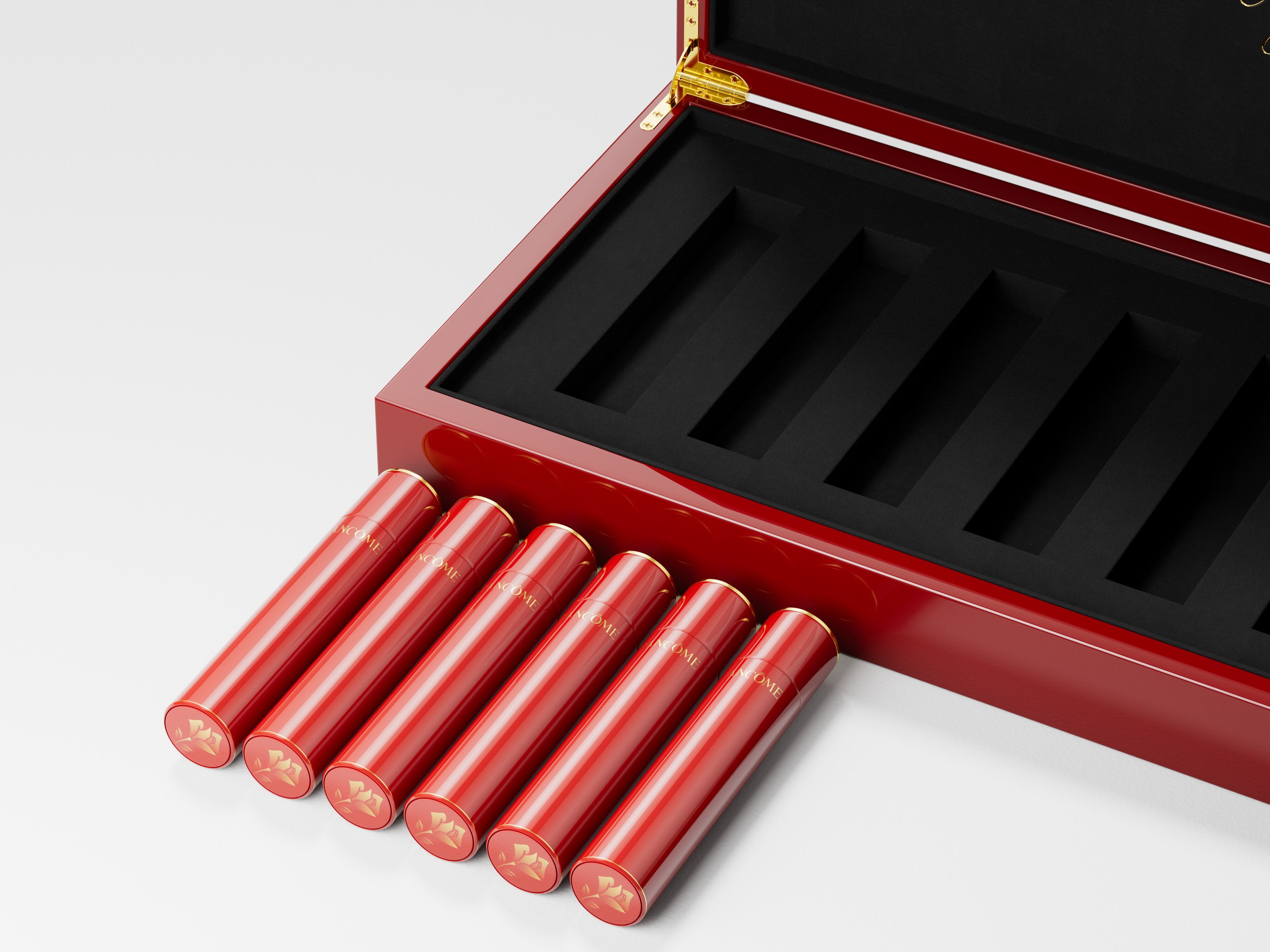 Present your lipstick collection in this elegant Lipstick Wood Box. Crafted from quality wood with a rich red finish, it features precisely cut slots to hold multiple lipsticks upright for easy viewing. The smooth finish and soft interior protect each bullet. Ideal for custom lipstick packaging, our OEM wooden box service allows for slot count adjustment, wood stain selection, and lid engraving for boutique beauty brands.