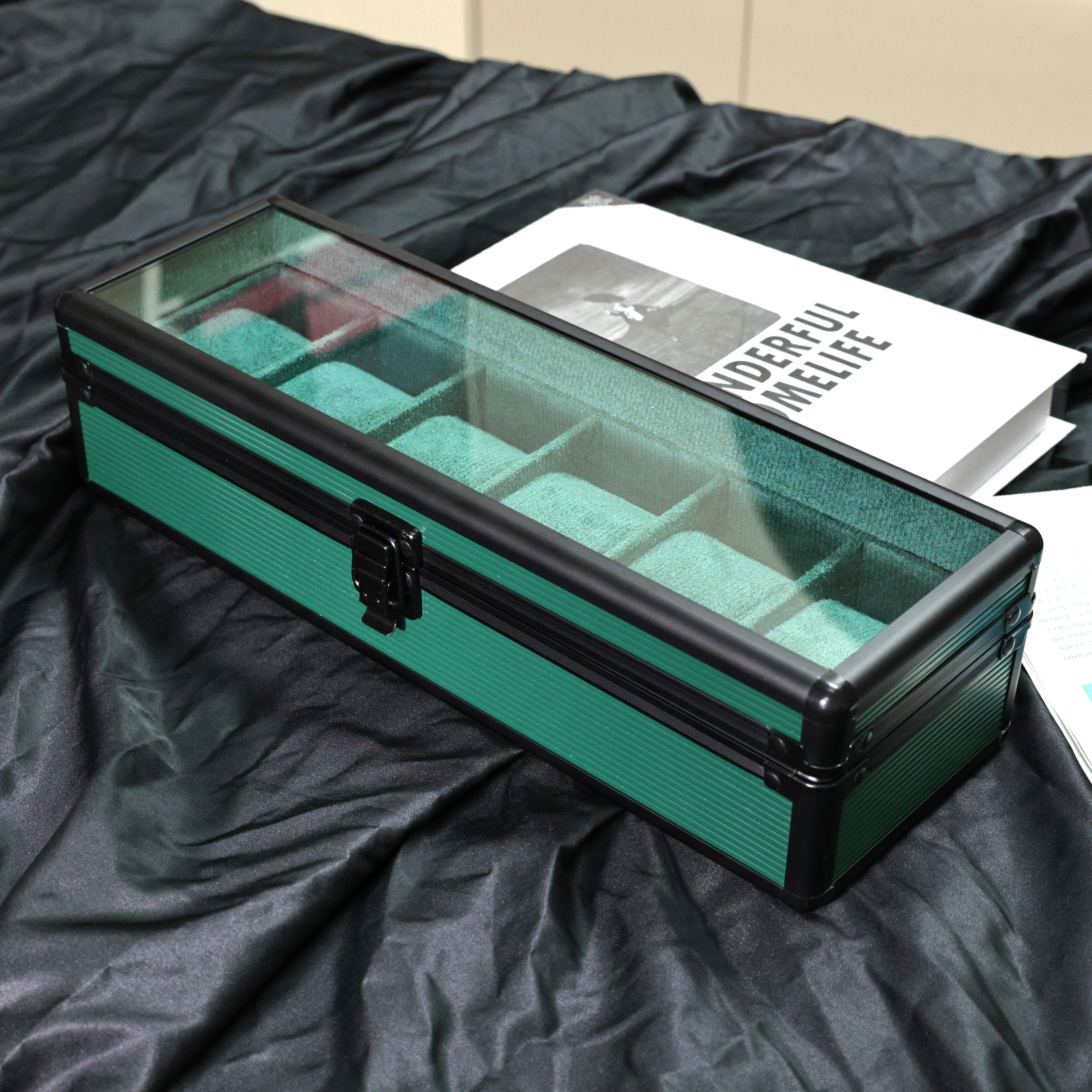 Designed with precision, this Six-Slot Green Watch Organizer for Men is the perfect watch organizer for men seeking a compact yet capacious storage solution. The vibrant green exterior houses six individually padded slots, providing excellent protection and easy visual access to a weekly rotation of timepieces. Its moderate size makes it versatile for various spaces. As a specialized OEM watch box manufacturer, we can tailor this organizer to your needs by adjusting the slot dimensions for larger watch cases, offering different lid styles (e.g., clear glass, solid), and applying high-quality printing or engraving for your logo, ensuring a perfect fit for your brand's product line.