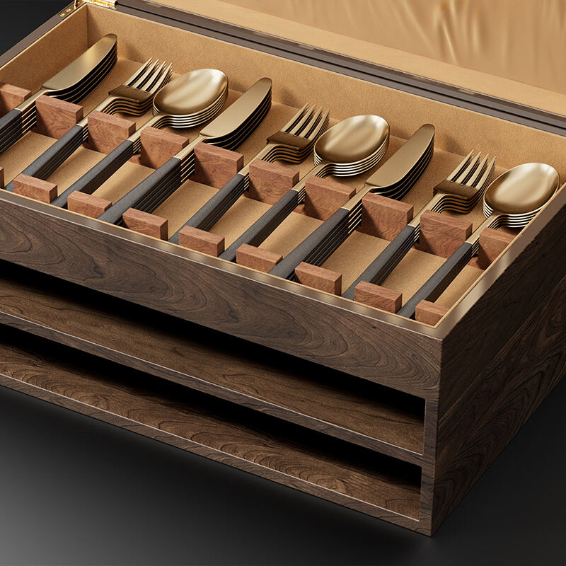 Maximize your kitchen efficiency with our three-layer cutlery storage wooden box. This sophisticated cutlery organization chest features three separate tiers, allowing for neat sorting of knives, forks, spoons, and other utensils. Constructed from high-quality wood, it ensures durability and a natural aesthetic for your kitchen. This wooden kitchen organizer is designed for OEM customization, enabling brands to create a cohesive look with custom engravings, choice of wood type, and finish, providing a practical and beautiful custom cutlery storage solution for end consumers or commercial use.
